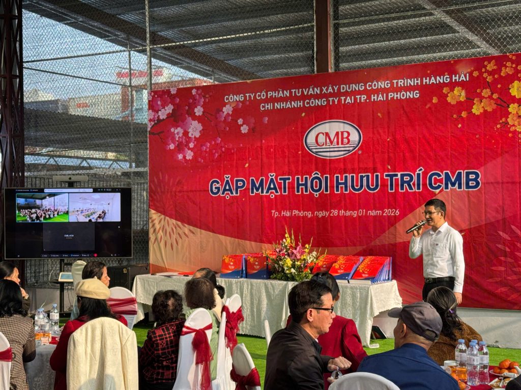 Trong không khí rộn ràng chuẩn bị đón một mùa xuân mới Bính Ngọ đang lan tỏa khắp muôn nơi, Công ty Cổ phần Tư vấn Xây dựng Công trình Hàng hải (CMB) đã long trọng tổ chức buổi gặp mặt Hội hưu trí CMB vào ngày 28/01/2026 tại Hải Phòng, đồng thời kết nối trực tuyến với điểm cầu TP. Hồ Chí Minh.
